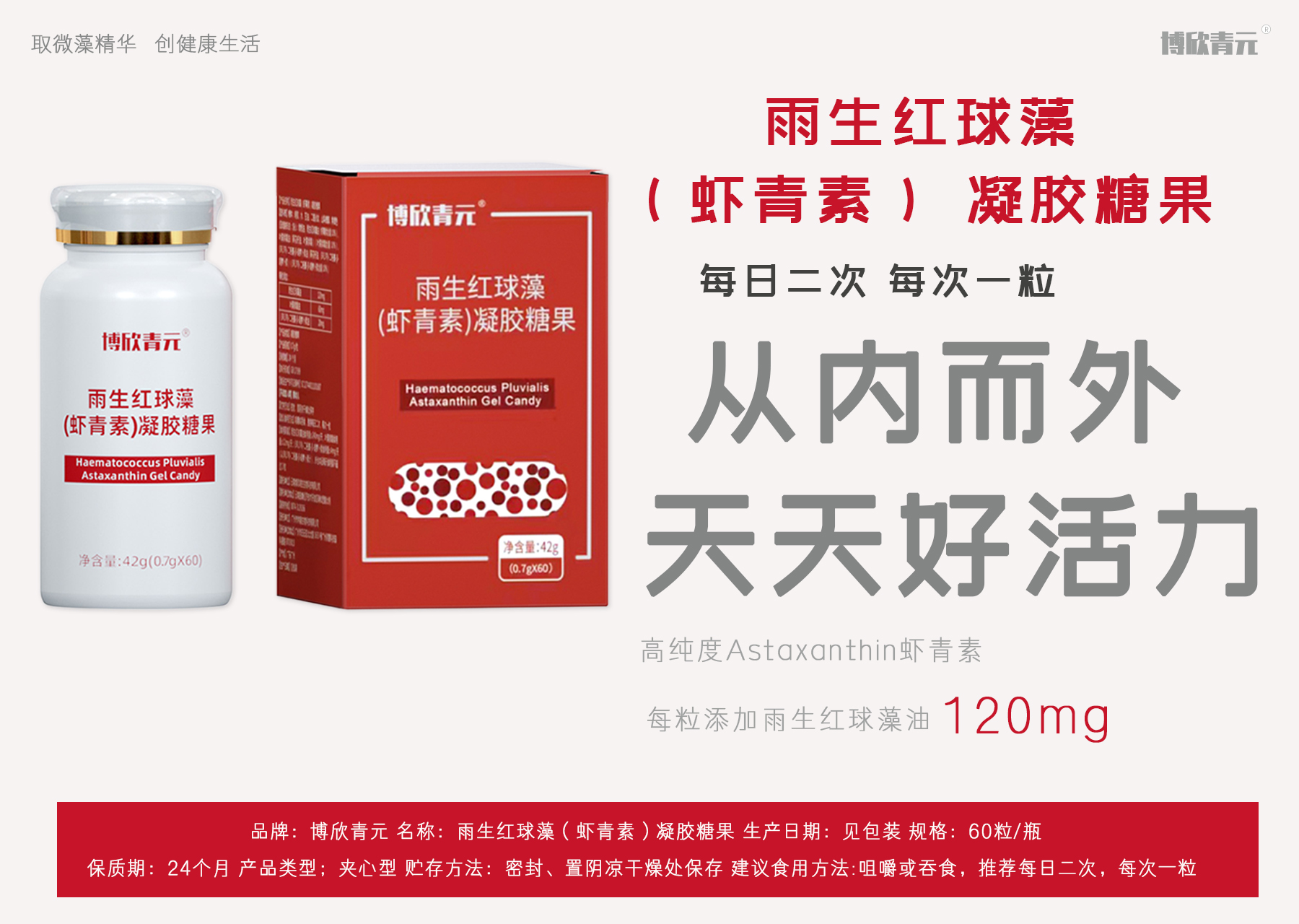 博欣青元雨生紅球藻(蝦青素)凝膠糖果